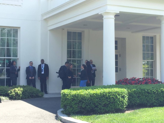 Các nhân viên Nhà Trắng đã có mặt khá đông ở cổng đón đoàn xe của Thủ tướng Việt Nam – Ảnh: LÊ KIÊN
