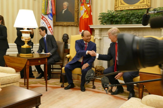 Tổng thống Donald Trump đã đón Thủ tướng Nguyễn Xuân Phúc vào Nhà trắng. Phát biểu trước báo giới, ông Trump chào mừng Thủ tướng Việt Nam, cho biết trong cuộc hội đàm sắp diễn ra, họ sẽ bàn về hợp tác thương mại.