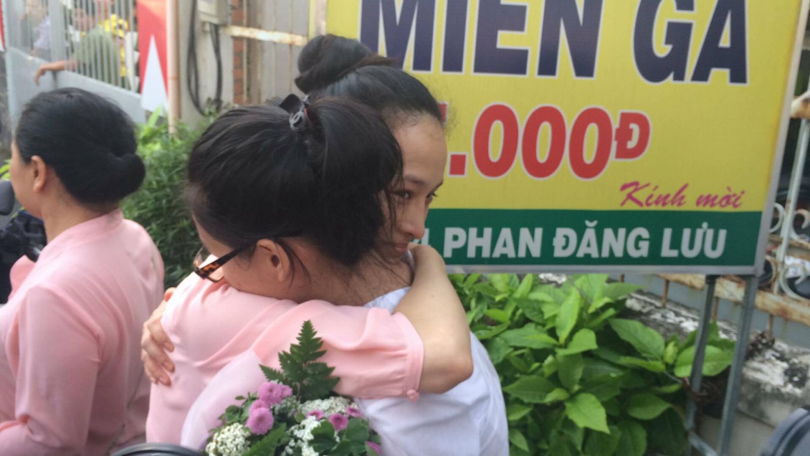 Bước ra khỏi trại tạm giam, Phương Nga ôm chặt người bạn của mình là Thùy Dung sau hơn 2 năm bị bắt tạm giam.