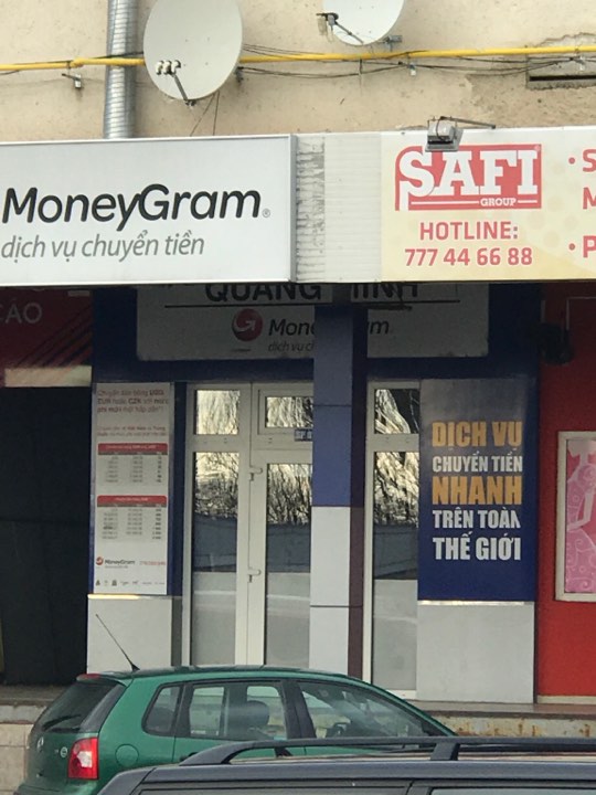 Ảnh: Văn phòng chuyển tiền của ông Nguyễn Hải Long tại chợ Sapa, Cộng hòa Séc tới hôm 22.11.2017 vẫn bị đóng cửa.